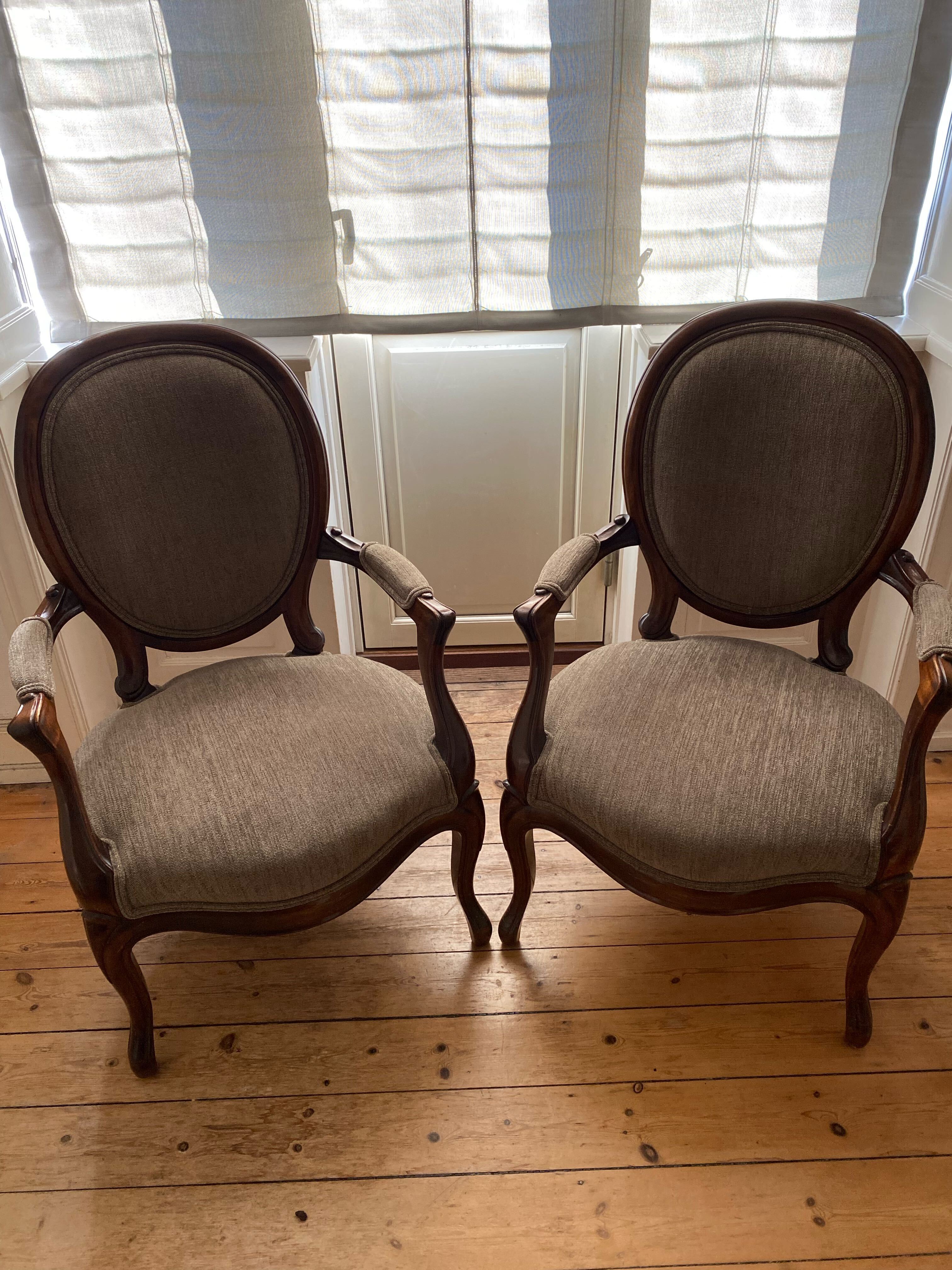 Samlet sælges 2 smukke mahogni stole med arm- og ryglæn.